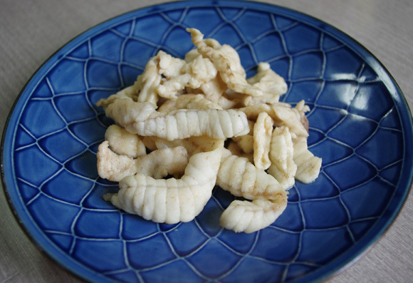 いや~昨日お土産にもらったアサリとフグの皮、美味かった!