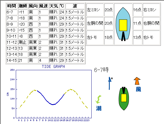 ともあれ、釣り座アドバイザー的には非常に低い点ながら、右トモで釣らせてもらいました。