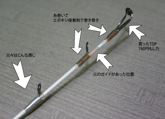 釣具屋で、前と同じようなTOP形状を探し、直径が僅かに大きめを購入。