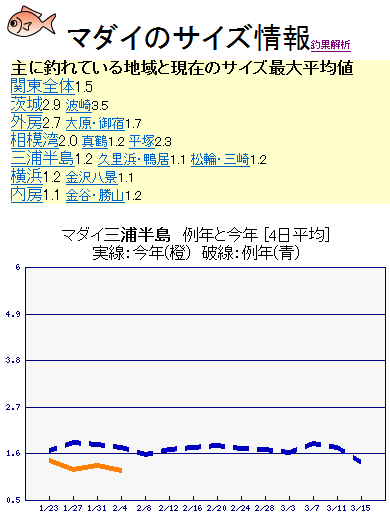 一応三浦半島のマダイの釣果とサイズを張っておきます。