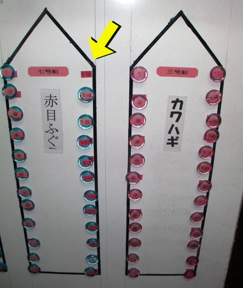 釣り物と釣り座のボードでわかっちゃいますけど客がこなかった宿だから宿名はご内密に^^