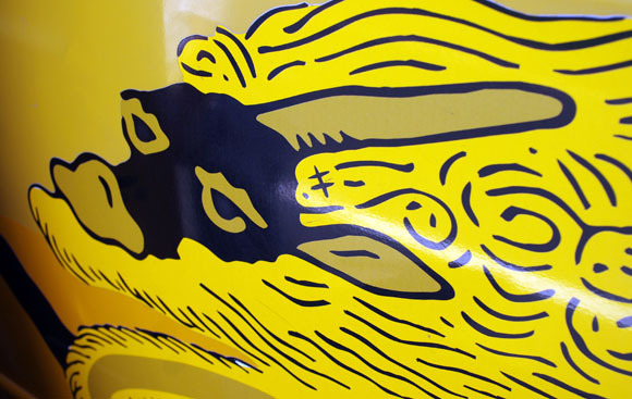 おおおお、構内移動用バスに書かれた、昔からあったキリンの隠し文字 (ど真ん中にキ)