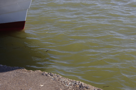 皆さんとミヨシ甲板上でお話ししながらの帰港でしたが、どんどんと濁りが濃くなる。