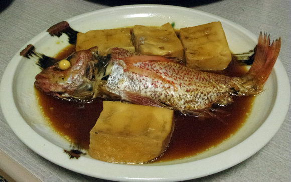塩焼きを食べた後の、豆腐と共に煮付けたアカムツは、ショウガいらずの薄めの味付けで、最高でした。