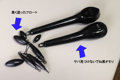 ほとんど塗装が取れてしまったサバ対策用の黒オモリを塗装し直すのに合わせて、