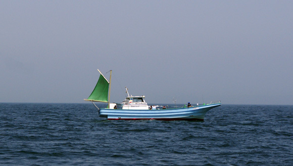 7時過ぎ、カサゴ船を横目に出船です。