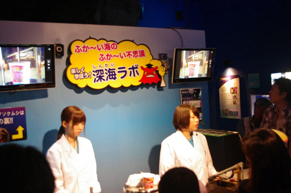 どうせなら、オバケ屋敷ぐらい歩くのも大変な暗さで、深海生物だけを展示しちゃった方がいいと思いますが、
