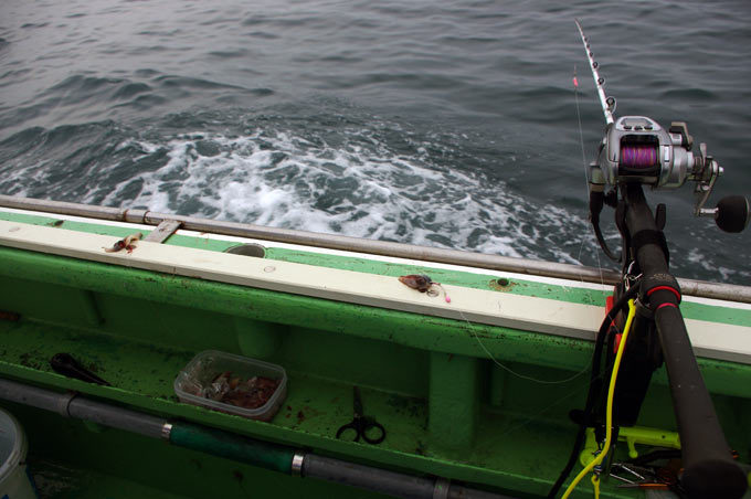 案の定、ポン太さんがデカい本命を追加したとの話を聞いた後は、左舷はミヨシのたー坊さんが一尾上げただけで、長い沈黙。