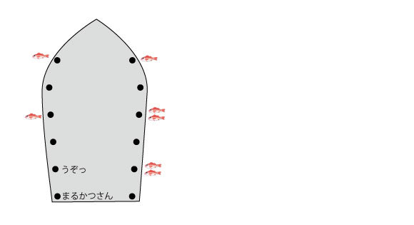 右舷はミヨシから1,3,5番、左舷も1、3番が本命をゲットしていて、なんと俺は左舷5番と気づきました!