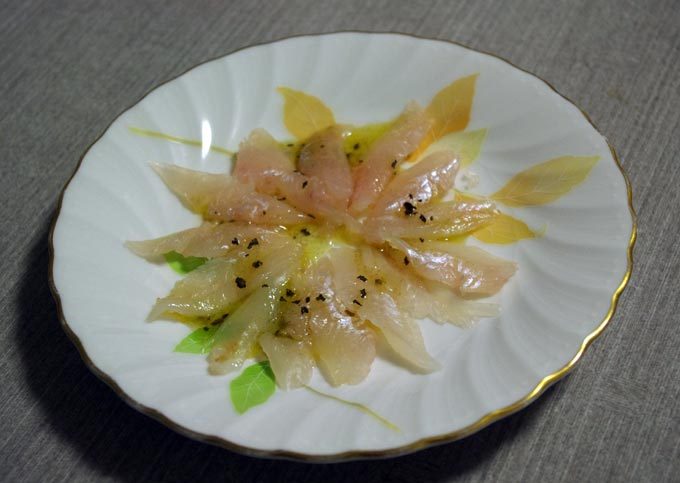 グジ飯と、どうしても食べたかったので小さい奴も持ち帰ったアカボラのカルパッチョ