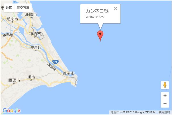 航程1時間弱でカンネコ根に到着。若干のウネリはあるが、波もなく海はいいのでミヨシ (みよし:船の中の位置で船首側を言う) でも釣りには影響なし。
